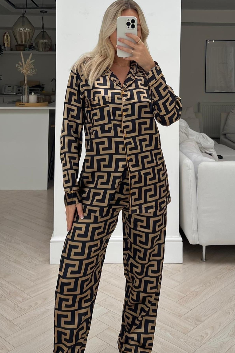 Sascha Black Gold Printed Long Pyjamas Glamify Famous For Loungewear